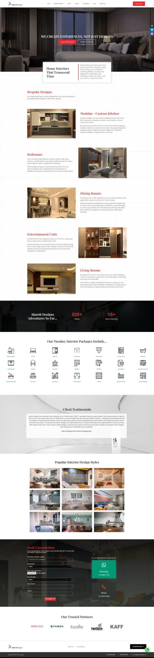 Akarsh Designs is an Interior Design Firm in Bangalore, India. It is specialized in Residential theme interiors and provides end-to-end design and execution services. I redesigned their website with a conversion-focused design, also designed their landing pages for Google Ads.