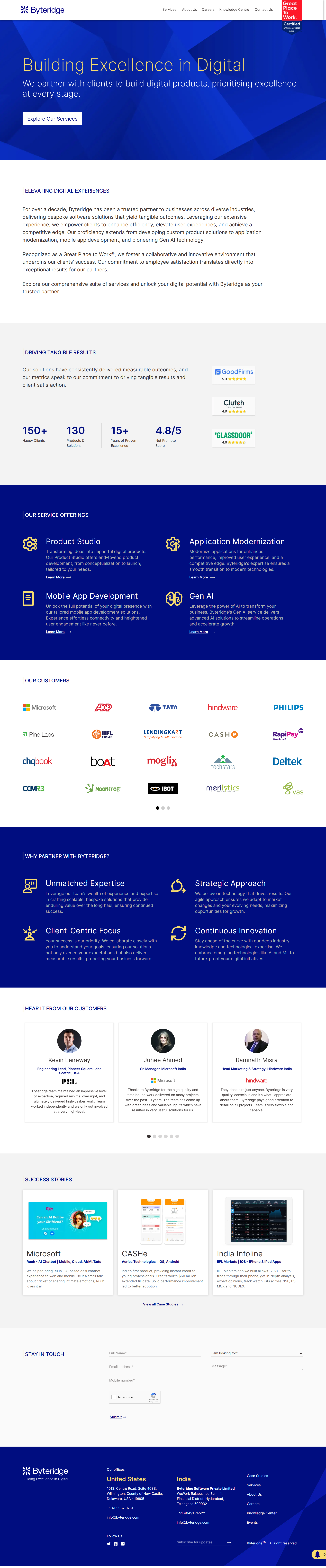 For Byteridge, we developed a pixel-perfect responsive website as per the design provided from the client. The project invoved development of static pages as well as dynamic modules for blogs and case studies. There was a lot of custom coding involved to develop a good user experience.